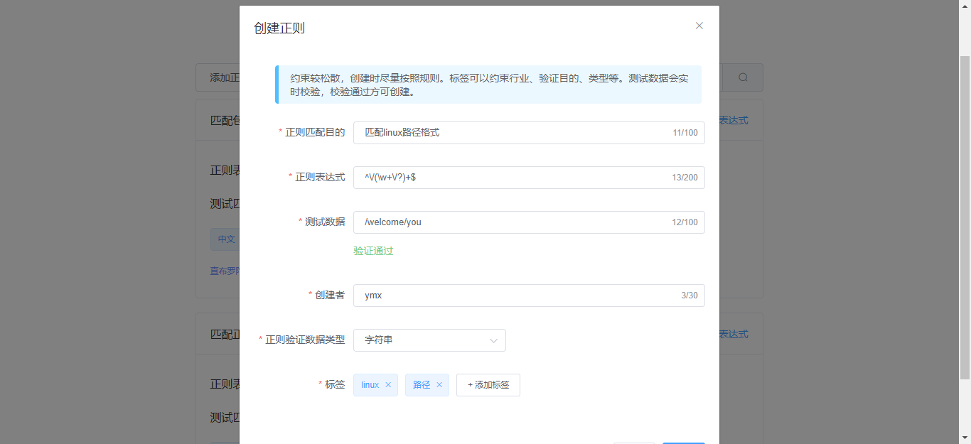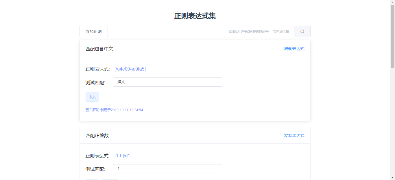 - 支持给正则表达式打标签,标记它的作用、目的、使用范围等。便于多维度搜索。