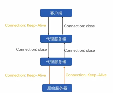 客户端的长连接仅仅意味着客户端发起的这条tcp连接是和第一层代理服务器保持连接关系。并不会直接命中到原始服务器。