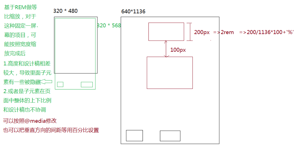 REM布局存在的问题,若项目要求固定一屏的,手机屏的高度小于社极品的高度,导致里面子元素有一些被隐藏,底部某些样式显示不出来