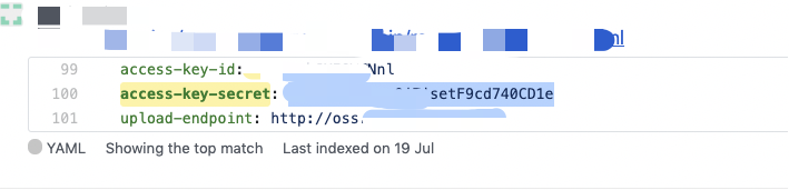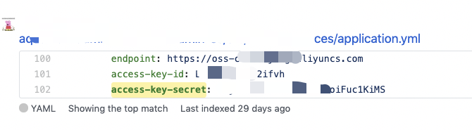 - Github查找目标关键字发现Access Key与AccessKey Secret;