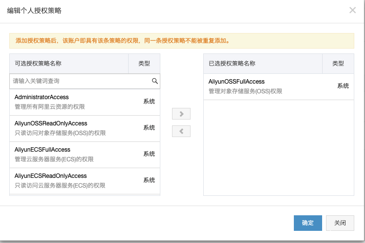 因为配置了RAM用户,使用RAM用户连接OSS。