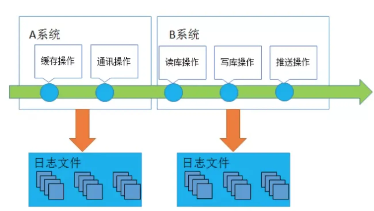 下面通过一张简图来说明调用链和日志聚合做的事情: