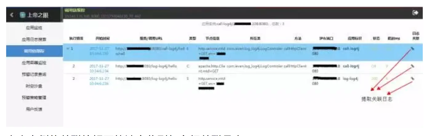 点击右侧的关联按钮可快速定位到与之相关联日志。