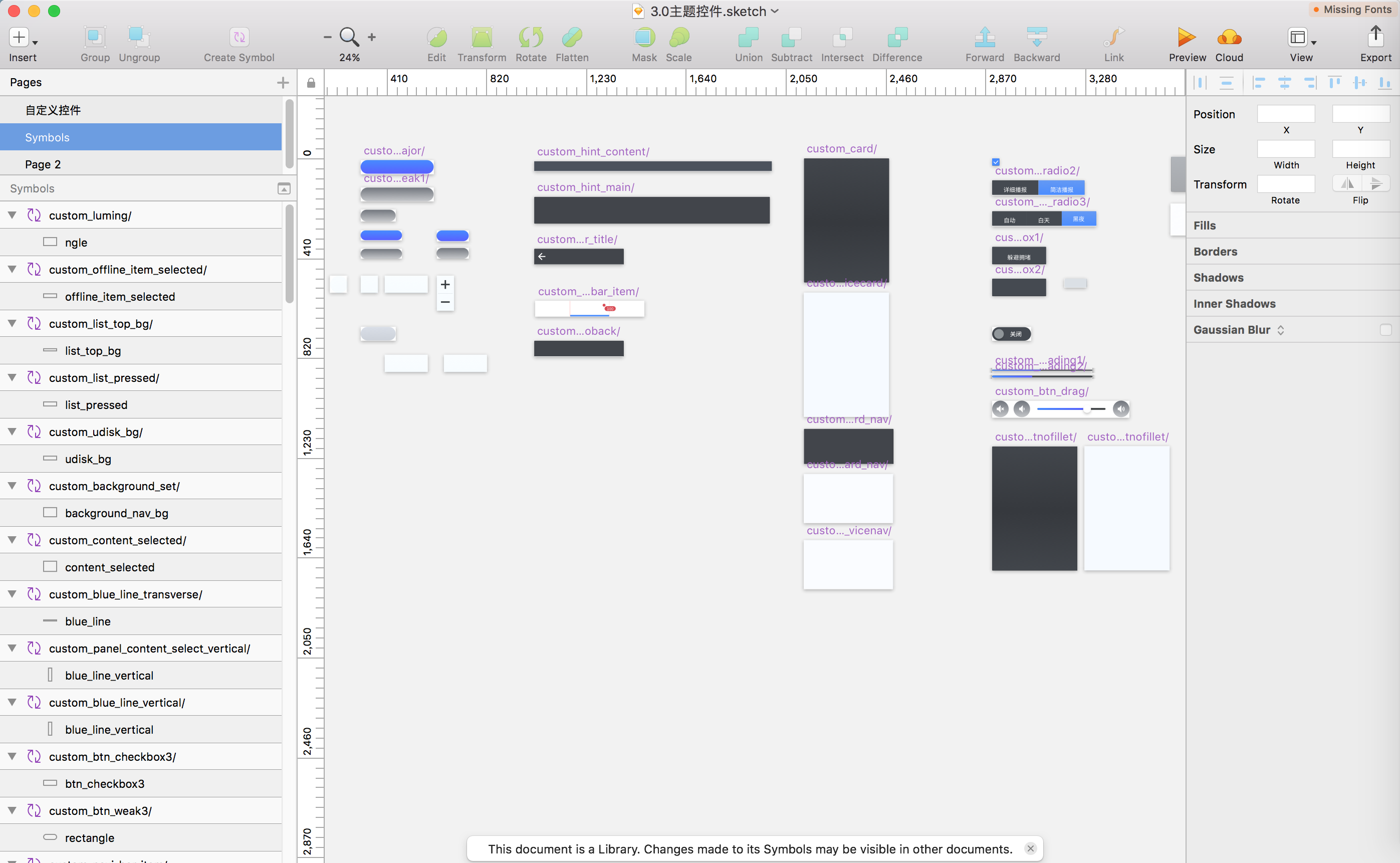 主题资源制作一般在界面设计前就需要提前设计好,UED在Sketch中将主题控件设计好之后,我们提供了一个快捷的主题输入界面,方便UED能快速编辑对应控件的主题属性,并一键上传到云端,如下所示,在Sketch中进行主题控件制作: