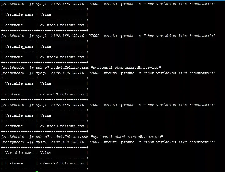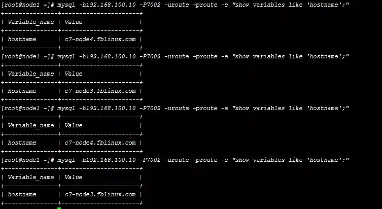 | c7-node1.fblinux.com | 192.168.100.10 | Centos 7.2 64位 | Mysql route节点,读写分离,主主故障转移,从库故障自动下线 |