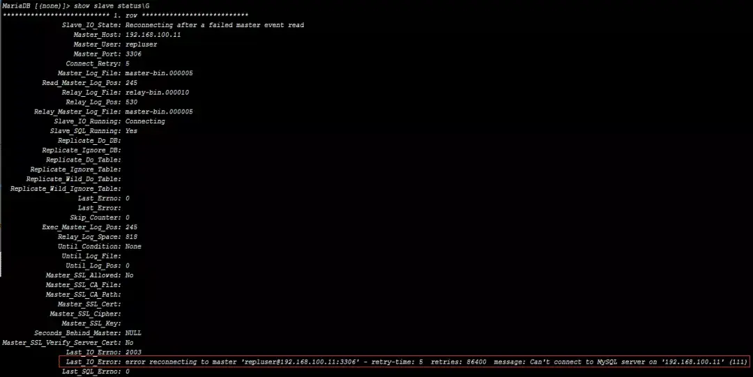 MariaDB [(none)]> FLUSH PRIVILEGES;从库down机测试