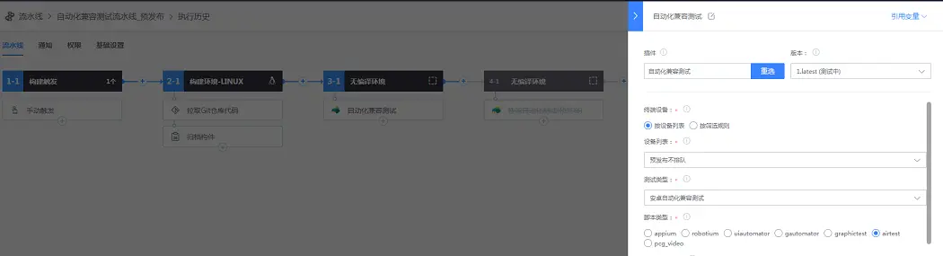 在开发及测试期间,为了保证项目进度,常常面临着任务重与时间紧的难题。CODM基于其游戏内容的丰富性与复杂性,这个问题显得更加突出。为了更好地满足测试时效性,腾讯WeTest在蓝盾平台上提供了触发和集成等能力于一体的DevOps自动化测试插件,包含并发功能测试、自动化兼容测试、性能自动化测试以及功能测试,保证项目测试任务的每日构建,使得项目组可进行一站式地自动化触发与任务查看、通讯等内容。