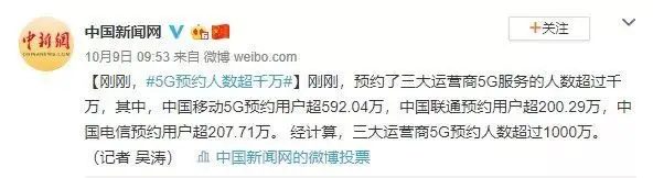 据中新网报道,国内三大运营商 5G 服务预约人数,已经破千万了。。。有钱人还是多啊。