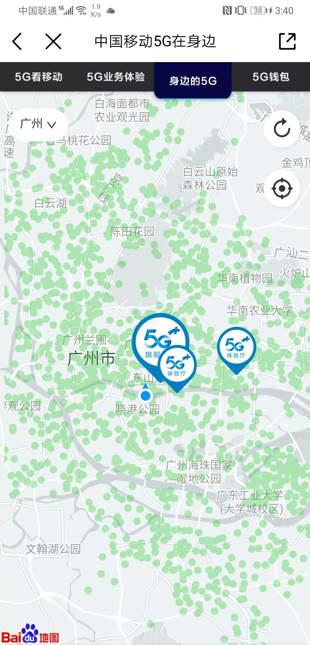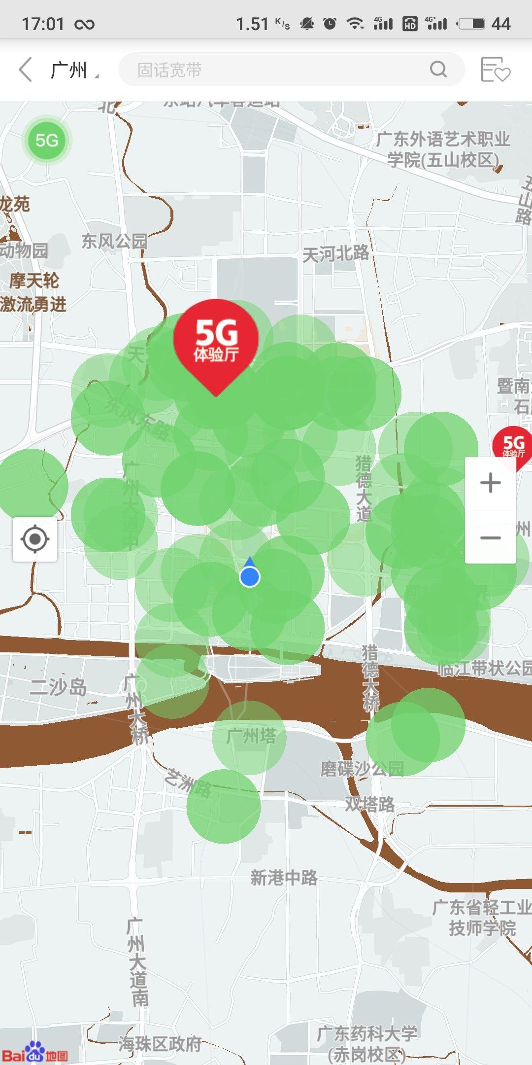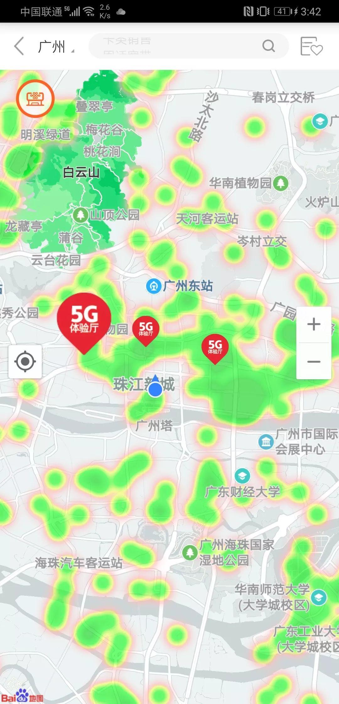 拿广州来说,7月底我们测试华为 Mate 20 X 5G 版时,联通 5G 基站的覆盖是这样的。