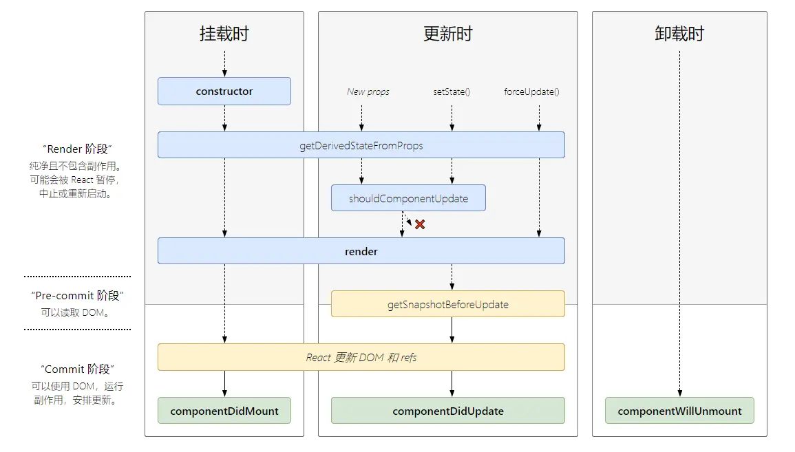 getDerivedStateFromPropsshouldComponentUpdaterendergetSnapshotBeforeUpdatecomponentDidUpdate