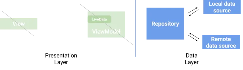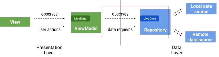 在你的应用中拥有一个数据层是一个好主意,它和你的视图层完全隔离。保持缓存和数据库与网络同步的算法并不简单。建议使用单独的 Repository 类作为处理这种复杂性的单一入口点.