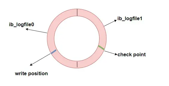 其中,整个环形是两个文件构成的(文件个数和文件大小你可以自己指定),两个文件像连在一起一样,其中绿色标识的是 check point ,用来表示当前日志被清理到的头(可以理解为当前有用的 redo log的头),而 write position 代表着当前写入位置(就是当前有用 redo log 的尾)。如果数据库有更新那么 write position 就会向前推,如果 write position 要追上 check point 的时候,那么数据库就会停下来将 check point 向前推(就是清理,此时就是将内存中的脏页进行写入磁盘,对应着上面的释放时间)。