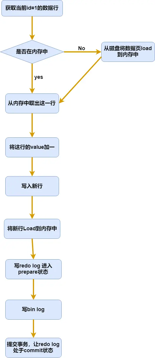 注意:这里的事务提交不仅仅是简单的 commit; ,因为这里只是简单的 update 语句,自己本身就是一个事务,所以这里的 commit; 是隐式的。而这里所说的 commit; 还包含了 redo log 的状态转换——从 prepare 到 commit 状态,这是一个很重要的点,后面我会详细解释,你这里需要记住有这么一个东西。