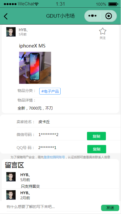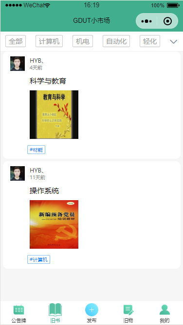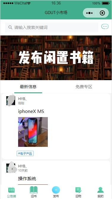 项目简介:构建一个GDUT大学生二手物品交易信息平台。整个项目已完成,是我的毕业设计,但因为涉及生活服务小程序个人用户无法通过审核(已完成)