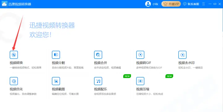 1、首先打开能够转换视频格式(qlv)的迅捷视频转换器,此时会进入到初始的视频功能界面,而我们需要的是众多功能中的视频转换功能。