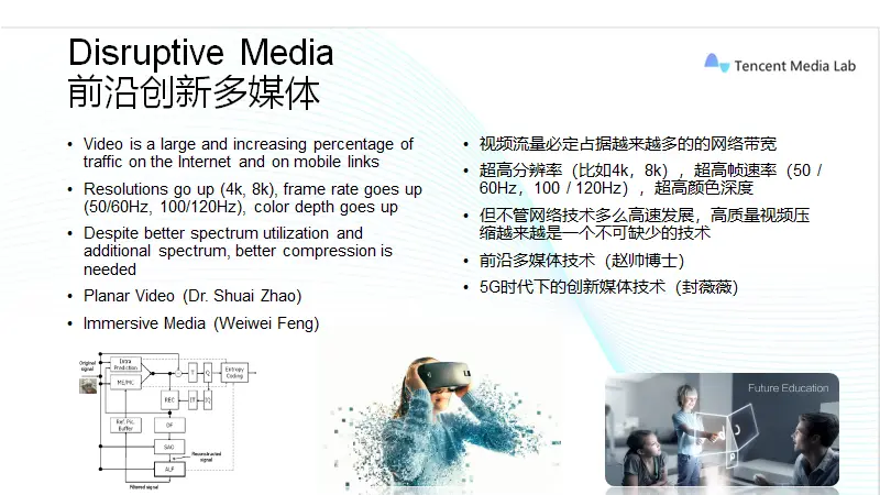 同时腾讯多媒体实验室的VVC/EVC重视源编码的相关开发项目;同时负责在IETF中RTP VVC负载格式的撰写和实现。我们认识到VVC/EVC将是实时通信场景中一种必须的视频压缩技术,适合早期使用对象,将会具有很高的市场需求。