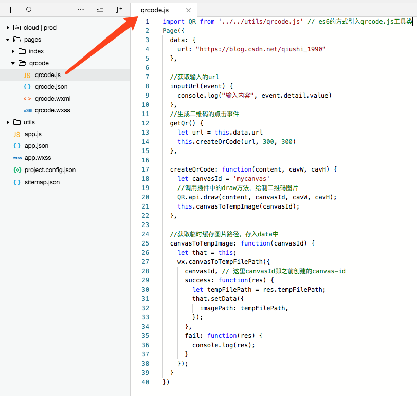 四,导入qrcode.js到utils目录下。