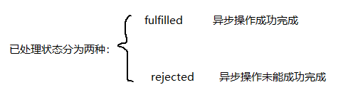a) Promise先是处于进行中(pending)的状态,此时操作尚未完成;等异步操作执行结束后,Promise变为已处理(settled)状态。分为如下两种状态: