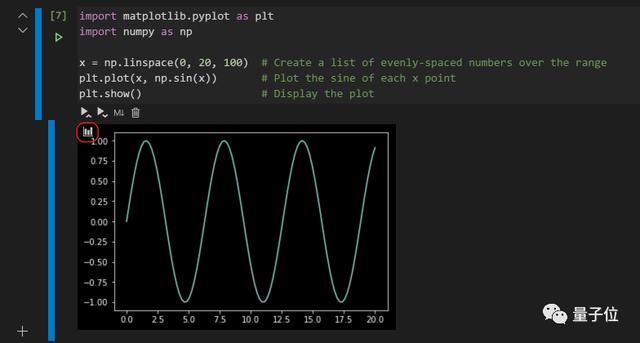 Jupyter笔记本另一大特点就是可以直接在代码中显示图表,VS Code当然也是支持该功能的。