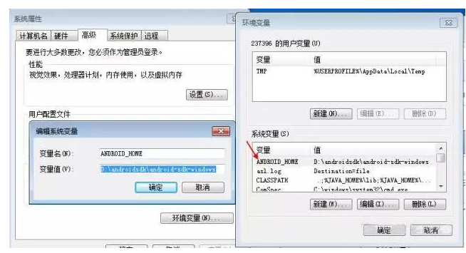 a.在系统变量新建:ANDROID_HOME,对应变量值为:D:\androidsdk\android-sdk-windows(sdk安装路径)
