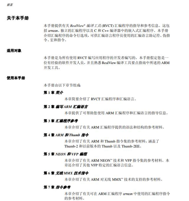 本手册是为所有使用RVCT编写应用程序的开发者编写的。本手册假定您是一位有经验的软件开发人员,并且熟悉RealVirw编译工具要点指南中所述的ARM开发工具。