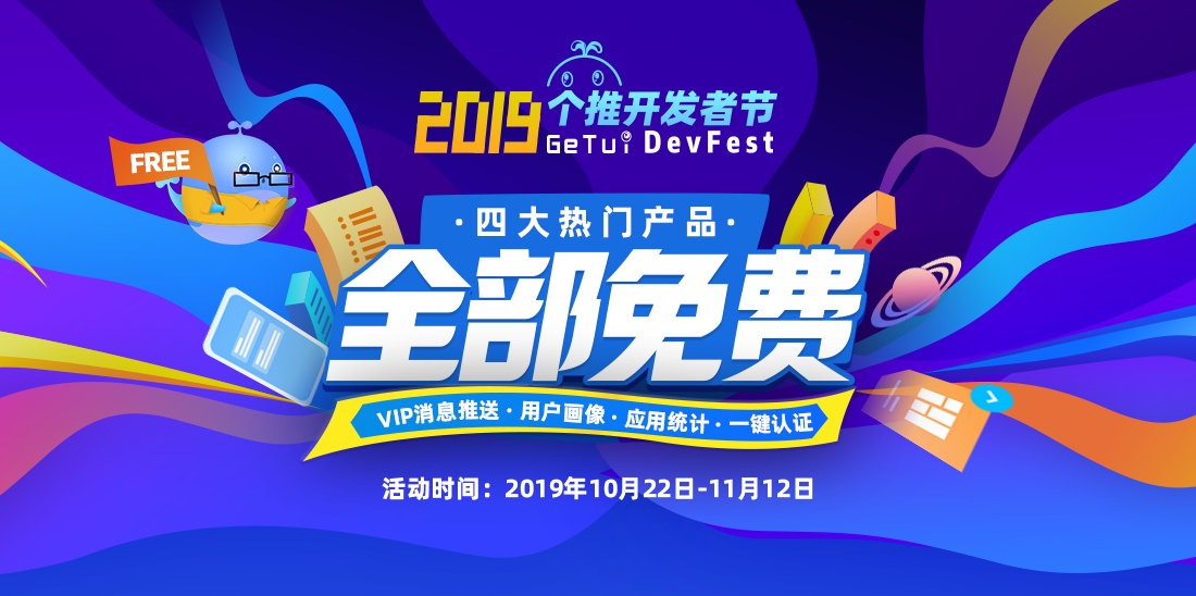 【2019个推开发者节】四大移动开发SDK全部免费用! 个推开发者 2019-10-22 173 阅读1分钟 1024程序员节来了双11近了各路满减、折扣、领券、秒杀、集赞营销玩法猛于虎,一看优惠两毛五日常拼命赶“需求”修“Bug”的开发者们想找个好用又不贵的工具太难了亲爱的开发者们,不要慌!<2019个推开发者节>火热来袭消息推送、用户画像、应用统计、一键认证个推四大硬核SDK,现在全部免费用!提升移动开发效率,助力APP用户增长双十一促销仅一天,但我们的产品免费用一年!还是VIP版本哦~你还在等什么?立即参与活动!