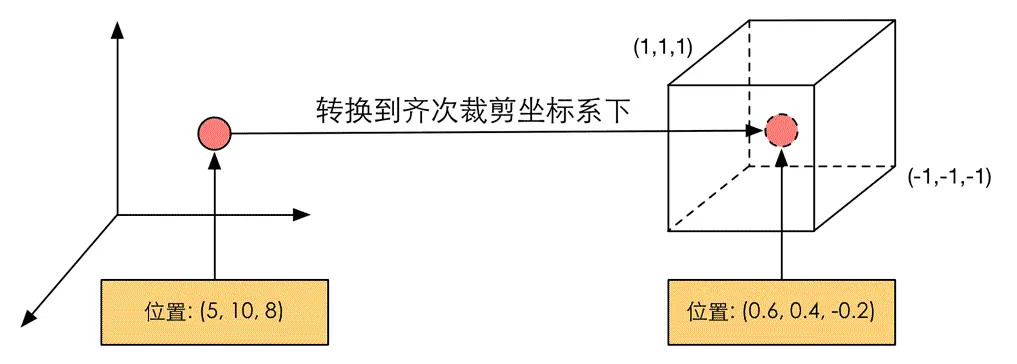 把顶点坐标转换到齐次裁剪空间后,接着通常再由硬件做透视除法,最终得到归一化的设备坐标(NDC)。