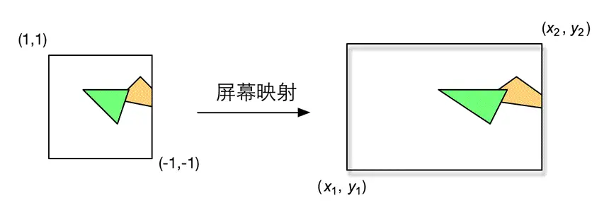 这一步输入的坐标仍然是三维坐标系下的坐标(范围在单位立方体内)。屏幕映射的任务是把每个图元的x和y坐标转换到屏幕坐标系下,这实际上是一个缩放的过程。屏幕坐标系是一个二维坐标系,它和我们用于显示画面的分辨率有很大关系。
