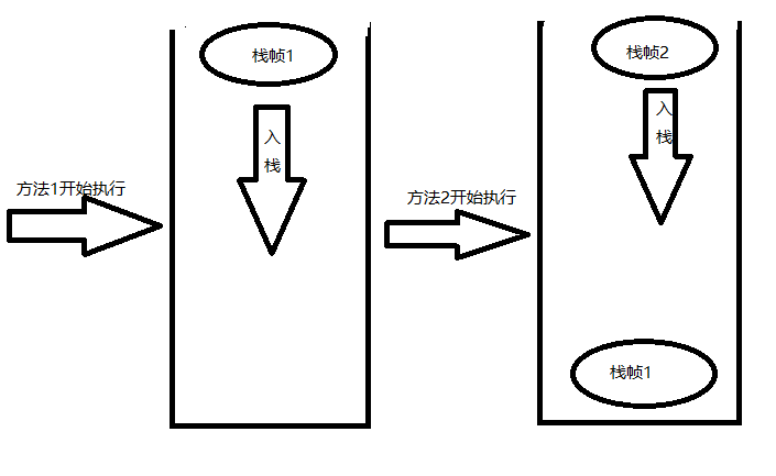 准备执行m1,创建m1对应的栈帧,入栈;执行m1时,准备执行m2,创建m2对应的栈帧,入栈;m2执行完毕,m2对应的栈帧出栈;m1执行完毕,m1对应的栈帧出栈。如图: