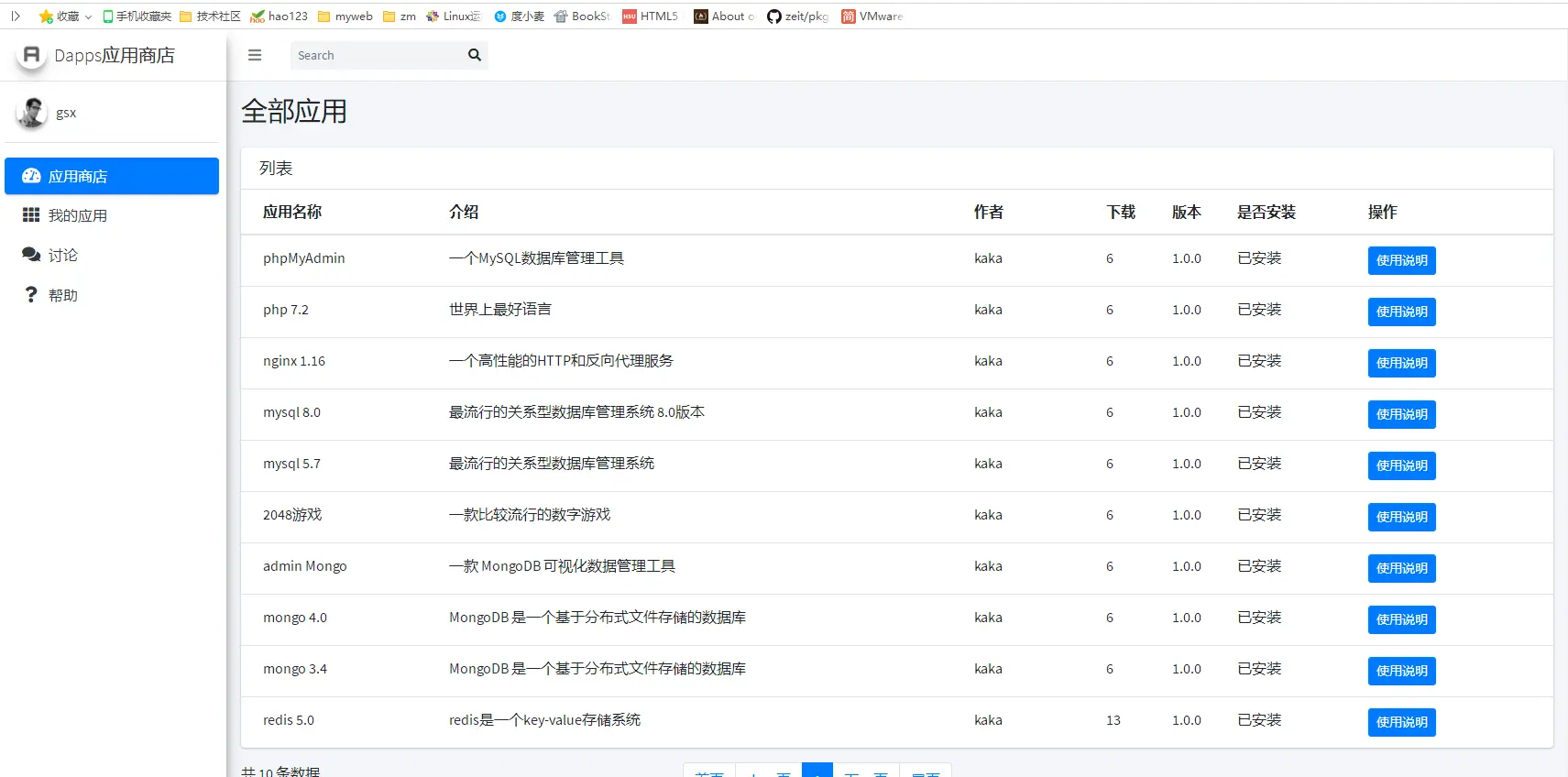 dapps:是基于docker的应用程序商店,包含丰富的软件。