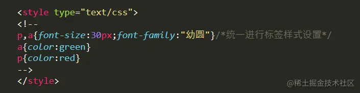 但是,为了防止低版本浏览器不识别<style>标签,导致标签内代码不慎出现在网页中,我们用HTML的注释标签<!---->来包住<style>里面的内容