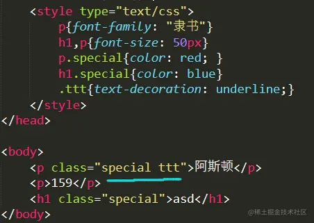 说明:class选择器优先于标签选择器