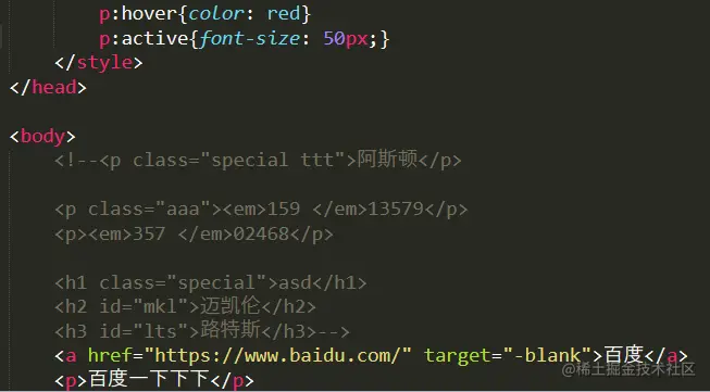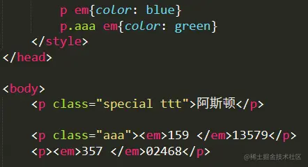 先父标签<p>再子标签<em>