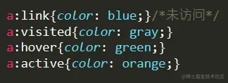 链接的四种状态:激活状态、已访问状态、未访问状态、鼠标悬停状态