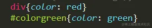 现在对第二个<div>标签使用ID选择器(green)和标签选择器(red)