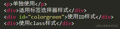 所以三者的优先级为:id > class > 标签选择