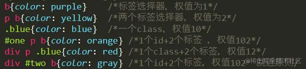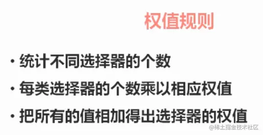 根据权值来判断CSS样式,哪种CSS样式权值高,就用哪种样式