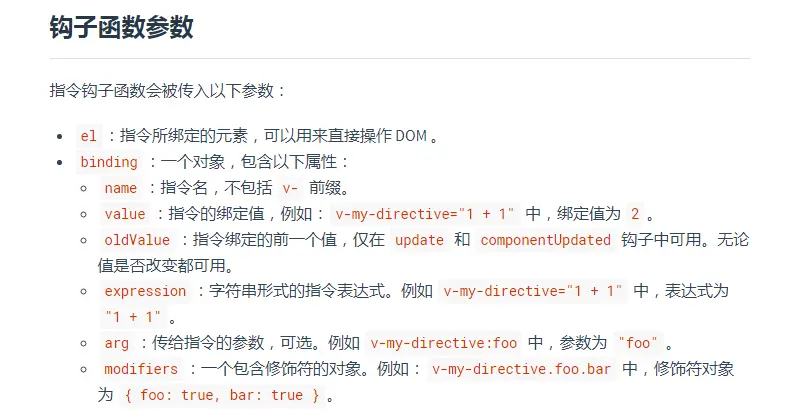 - 参数1: 指令的名称,注意,在定义的时候,指令的名称前面,不需要加 v- 前缀但是,在调用的时候必须在指令名称前加上 v- 前缀
