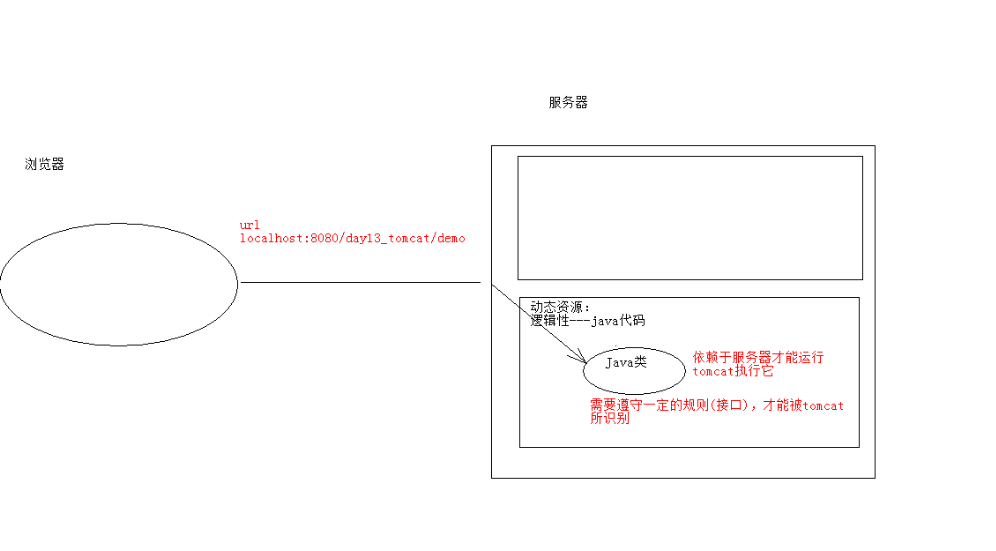 2. 动态资源:每个用户访问相同资源后,得到的结果可能不一样。称为动态资源。动态资源被访问后,需要先转换为静态资源,在返回给浏览器