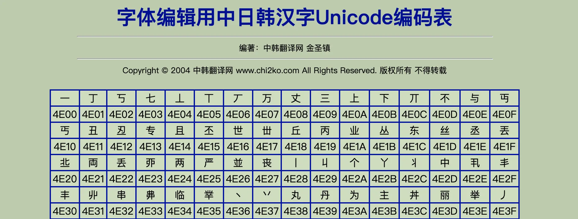 - 然后将码点转换为 2 进制,从低位到高位替换 x 即可得到字二进制的原码