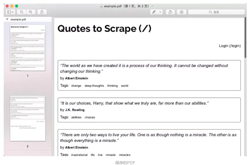 pdf 方法也是类似的,只不过页面保存格式不一样,最后得到一个多页的 pdf 文件,样例如下:
