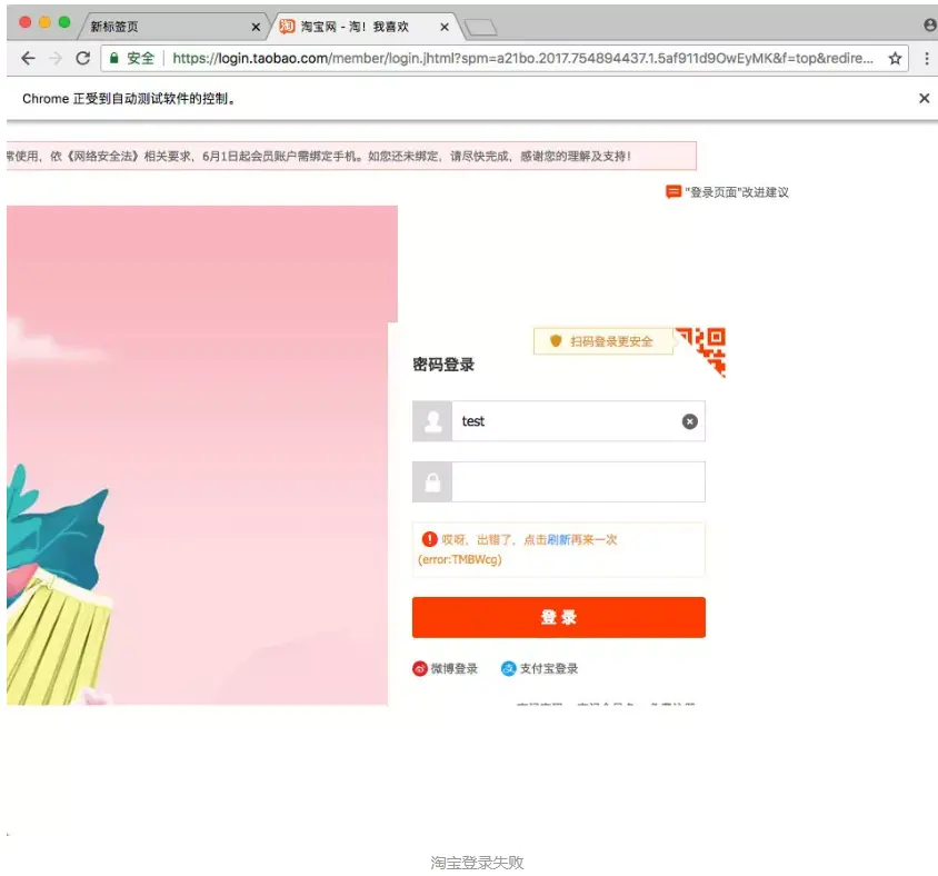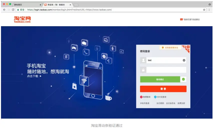 OK,这样的话我们就成功规避了 webdriver 的检测,使用鼠标拖动模拟就可以完成淘宝的登录了。