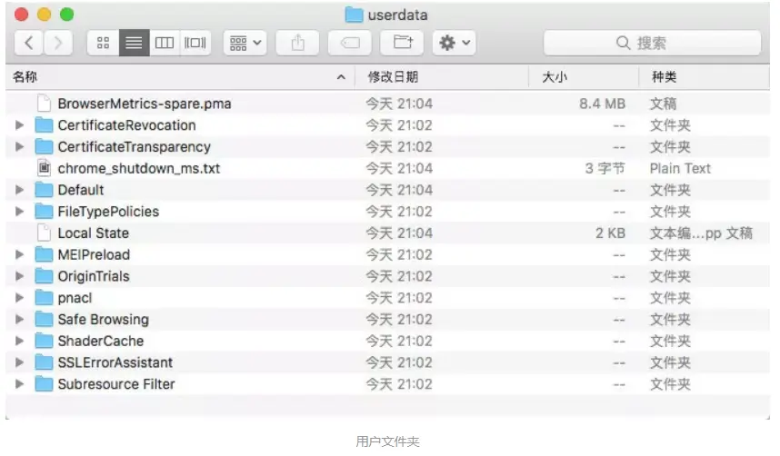那么这些信息保存在哪里了呢?其实就是保存在用户目录下了,里面不仅包含了浏览器的基本配置信息,还有一些 Cache、Cookies 等各种信息都在里面,如果我们能在浏览器启动的时候读取这些信息,那么启动的时候就可以恢复一些历史记录甚至一些登录状态信息了。