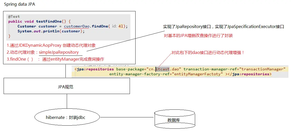 把JPA规范的代码封装起来,真正进行查询的还是hibernate或mybatis >>(封装了jdbc操作),然后进行查询或操作数据库。