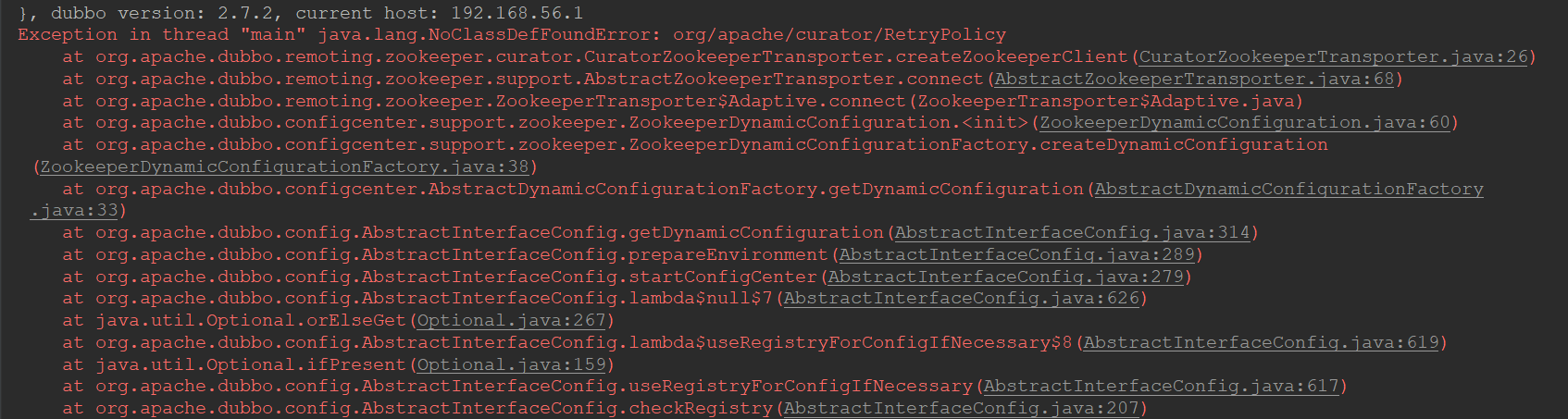 Exception in thread "main" java.lang.NoClassDefFoundError: org/apache/curator/RetryPolicy