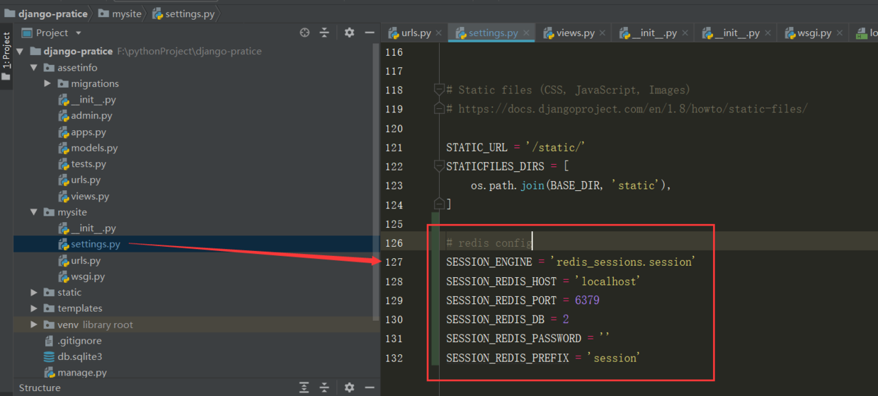 3)打开assetinfo/views.py文件,修改session_test视图如下: