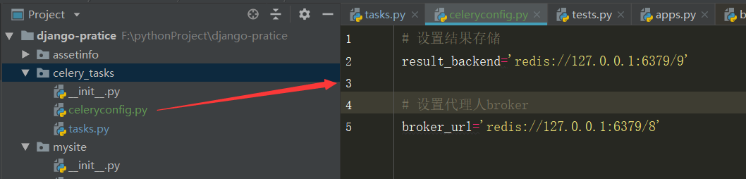 下面我们在tasks.py模块 同级目录下创建配置模块celeryconfig.py: