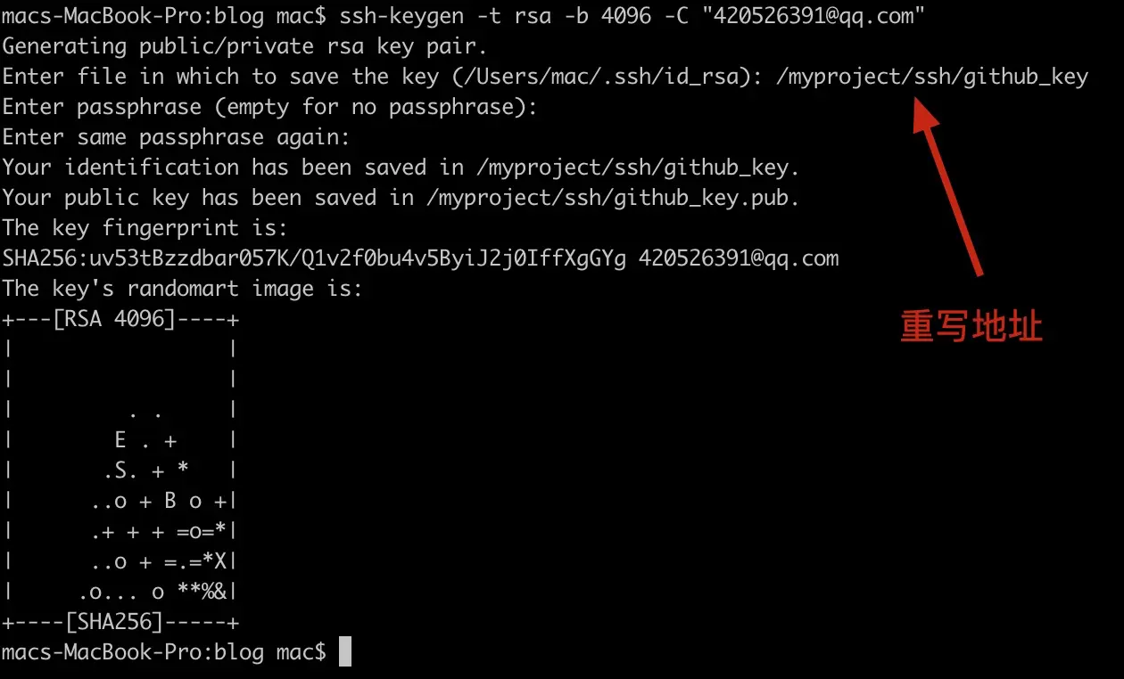 ssh-keygen -t rsa -b 4096 -C "your_email@example.com 通常来说,都会默认放在/User/mac/.ssh/id_rsa文件夹。然后继续下一步就行了。但是,如果要放在另外的文件夹怎么处理了? - 选择存放位置