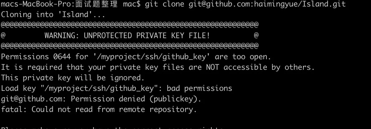 当我clone的时候,发现github报权限过大错误如下: