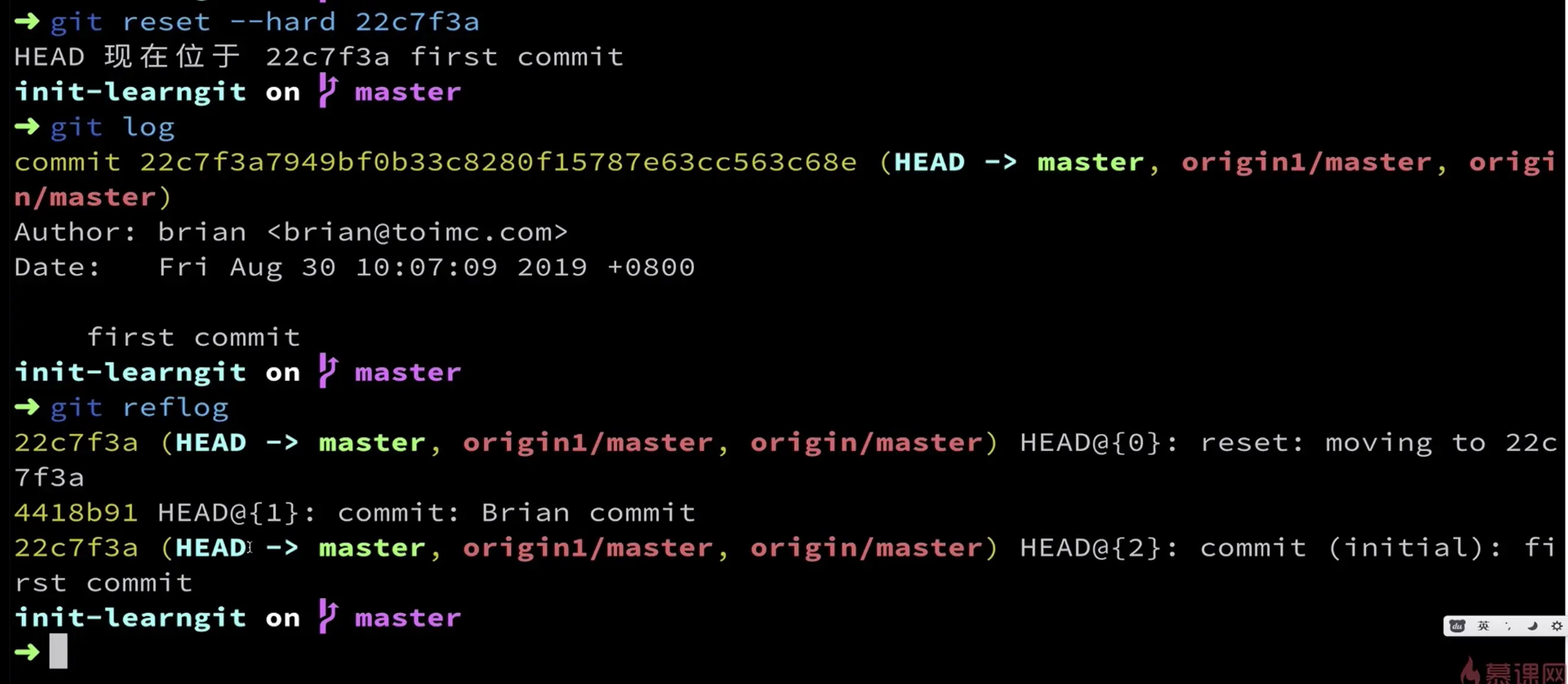 git reflog 包括所有的提交、删除、切换分支的记录